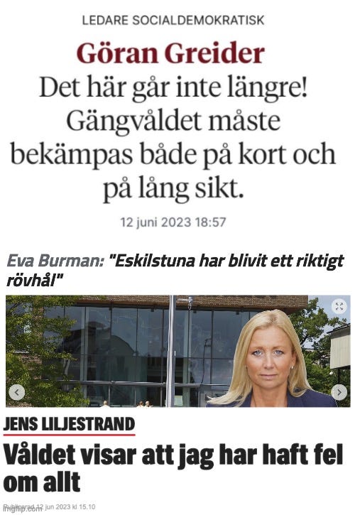 Ni har fördummat debatten från dag ett, ni har förhalat diskussionen om rimliga sätt att angripa gängen, våldet och segregationen. Systematiskt har ni klumpat ihop intelligenta, välvilliga personer som gjort hemläxan, som läst på, som samlat in material, som påvisat samband, som skrivit böcker…. med Hitler. Ni begick det klassiska misstaget att skjuta budbäraren. Fast oss emellan… det var inget “misstag”, eller hur? Ni visste precis vad ni gjorde. Det var så skönt, så lätt, att ställa sig på “det godas” sida. Så enkelt att blanda bort korten med salvelsefullt tal om “främlingsfientlighet” och “fel värdegrund”.