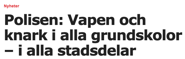 Det tål att upprepas: hittills har Sverige haft tur som en tokig när det gäller just sprängningarna. Tyvärr kommer turen en vacker dag att rinna ut och en skolklass kommer att knata förbi en trappuppgång precis när en bomb smäller av. Det är bara en tidsfråga. Dussintals små kroppar kommer att ligga utkletade på trottoaren i gula reflexvästar. Blod överallt. Söndersprängda armar och ben. Utrunna hjärnor. En gärningsman kommer att gripas och det kommer att visa sig att han redan suttit häktad ett stort antal gånger för en rad olika brott – fast just denna vecka var han oturligt nog utsläppt. Han väntar också på ett skadestånd från staten för att han fått sitta inlåst en halv dag för länge. Ett trauma. För honom.